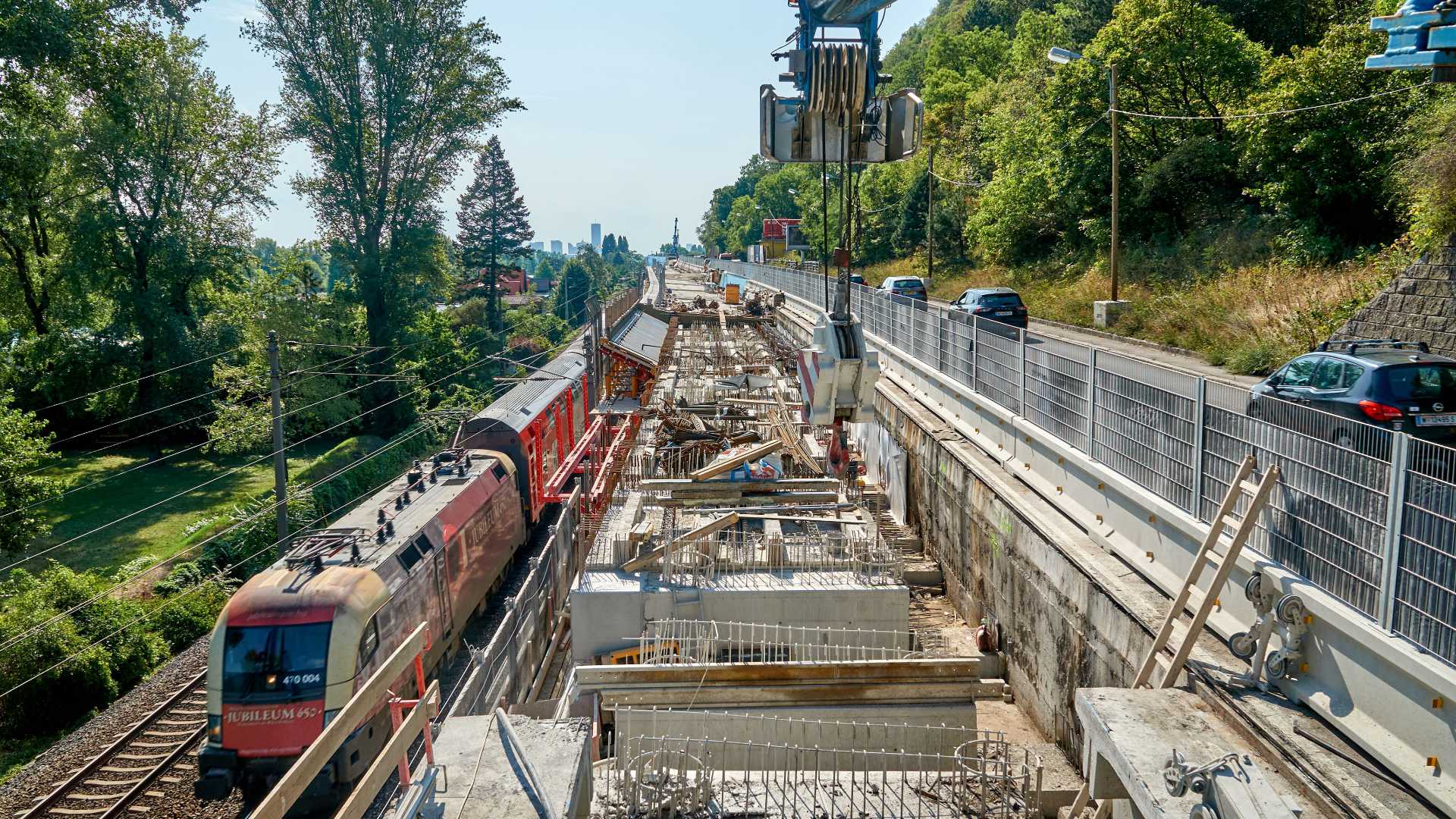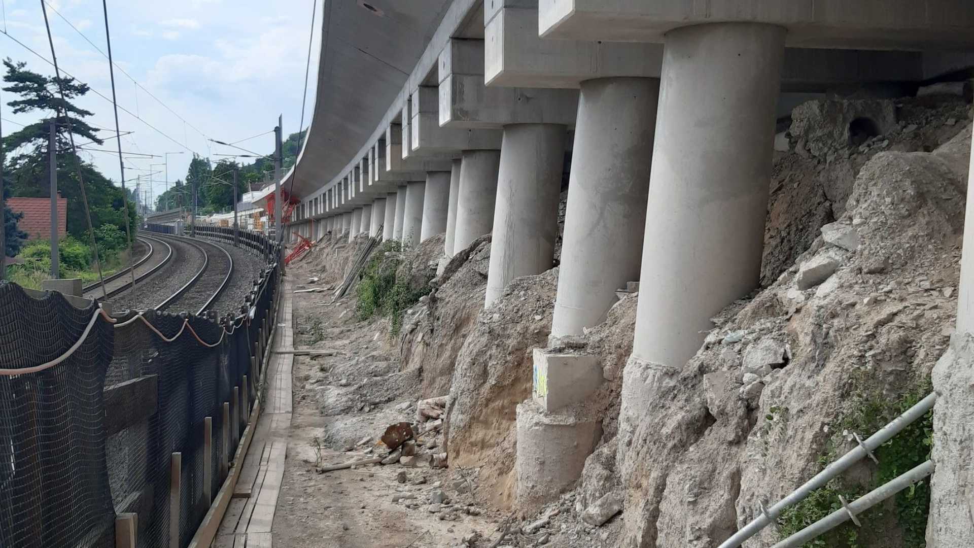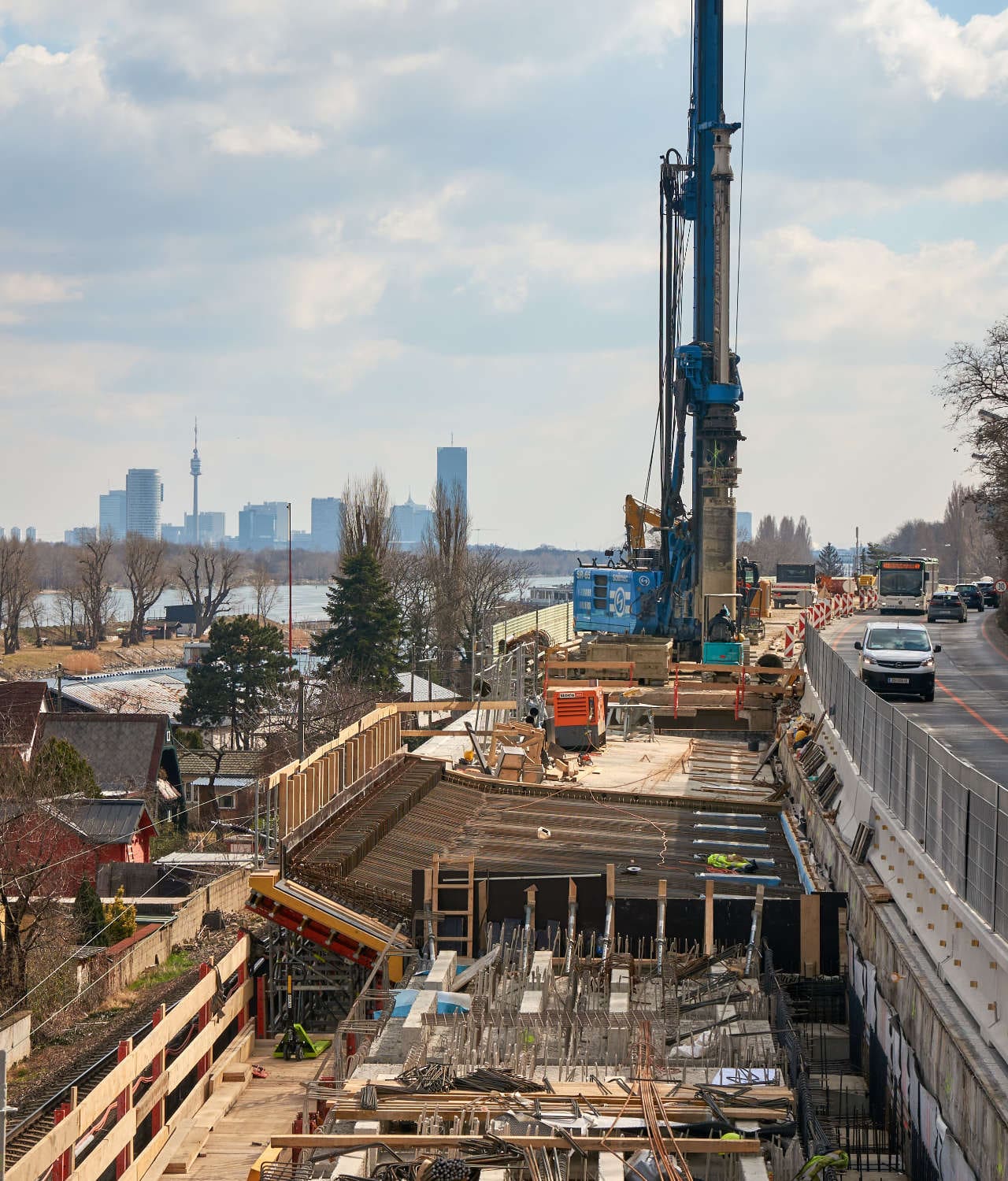 Der Unterbau wird durch Großbohrpfähle gebildet und nach dem geplanten Abbruch der Stützbauwerke der ÖBB durch Spritzbeton-sicherungen zwischen den Gründungskörpern komplettiert.